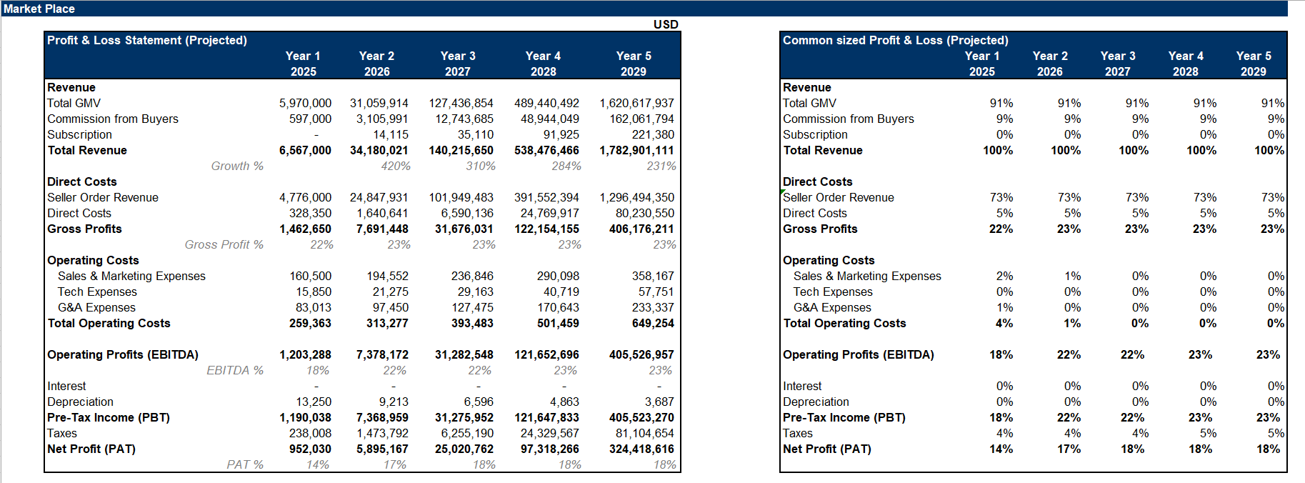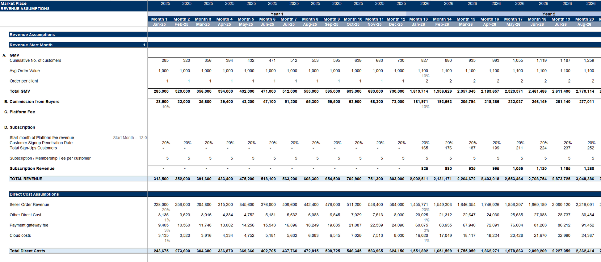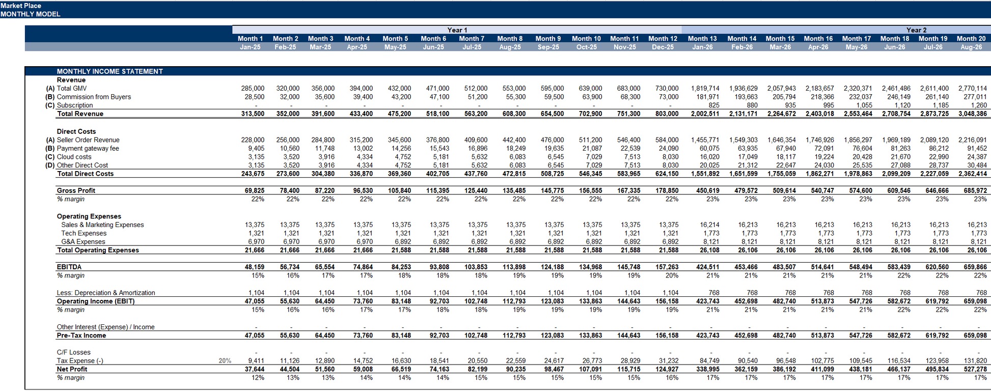 E-Commerce Marketplace Financial Model Template (Excel)