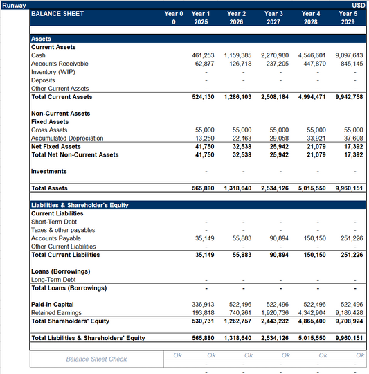 - P&L and Balance Sheet: Prebuilt and exportable
